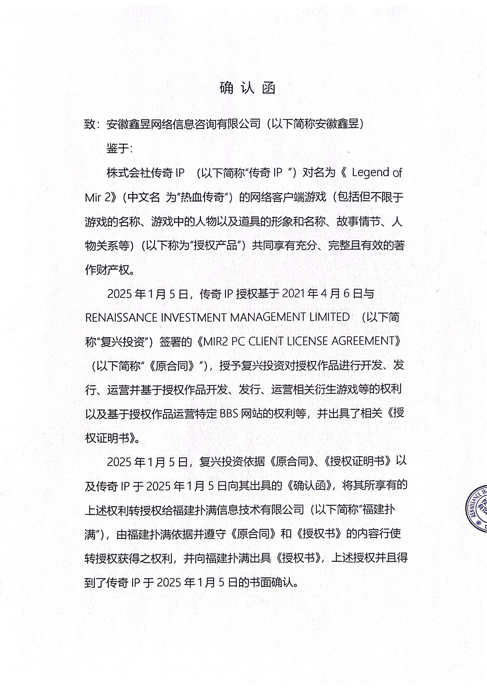 關于對《The Legend of Mir 2》(熱血傳奇) 衍生品游戲直播的嚴正聲明
